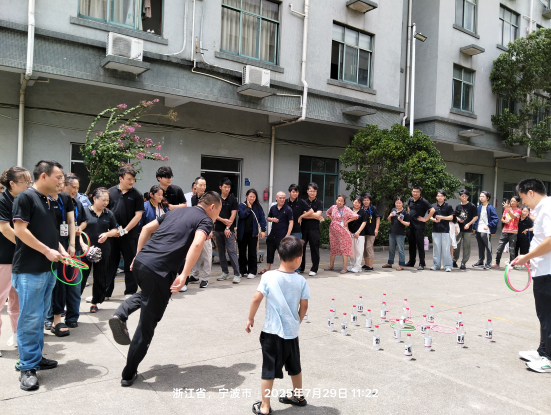 午后的陽光被微風(fēng)揉碎,灑在公司生活區(qū)籃球場(chǎng)的水泥地上,少了幾分盛夏的灼人,多了些許難得的舒爽。2025 年 7 月 29 日 11 點(diǎn) 15 分,隨著工作人員將最后一件獎(jiǎng)品擺放到位,這場(chǎng)醞釀已久的套圈活動(dòng)正式拉開序幕。
