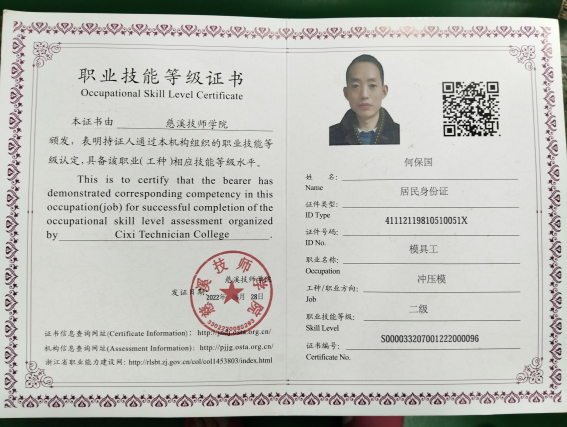 證書到手后,公司行政部門第一時間行動起來。依據寧波市人力資源和社會保障局關于提升人才技能補貼的相關要求,以及《慈溪市人民政府辦公室關于貫徹落實穩就業政策全力促發展惠民生的通知》(慈政辦發〔2024〕10號)文件中明確的標準——技師可享受1萬元一次性補貼、高級技師可享受2萬元一次性補貼,行政同事積極協助何保國整理申請材料,精準核對文件要求,高效完成了補貼申請的遞交工作。