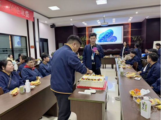 生日會現場,黃總攜各位領導親臨現場,為壽星們送上最真摯的祝福?!案兄x大家在崗位上的辛勤付出,公司的發展離不開每一位家人的努力。希望今天的生日會能讓大家感受到家的溫暖,愿大家在未來的日子里健康快樂,與公司共同成長。”黃總的話語樸實而溫暖,如同冬日里的一股暖流,滋潤著每個人的心田。領導們與壽星們親切交談,傾聽大家的心聲,讓這份關懷變得更加真切動人。