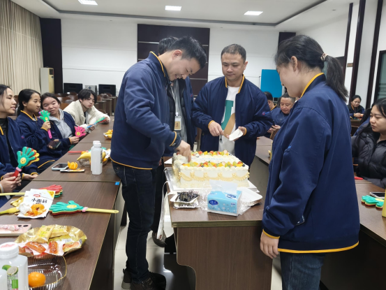 主管與人力資源部的小伙伴們化身“幸福傳遞官”,小心翼翼地為每一位壽星分發(fā)蛋糕,甜糯的口感在舌尖化開,正如這份來自大家庭的溫暖,浸潤心田。何主任也為壽星們送上了最真摯的祝福,話語間滿是對大家辛勤付出的肯定與未來的期許,讓在場的每一個(gè)人都倍感溫暖。